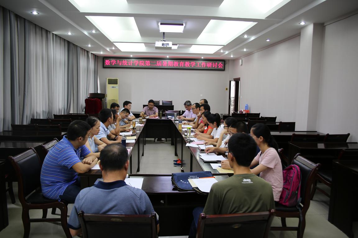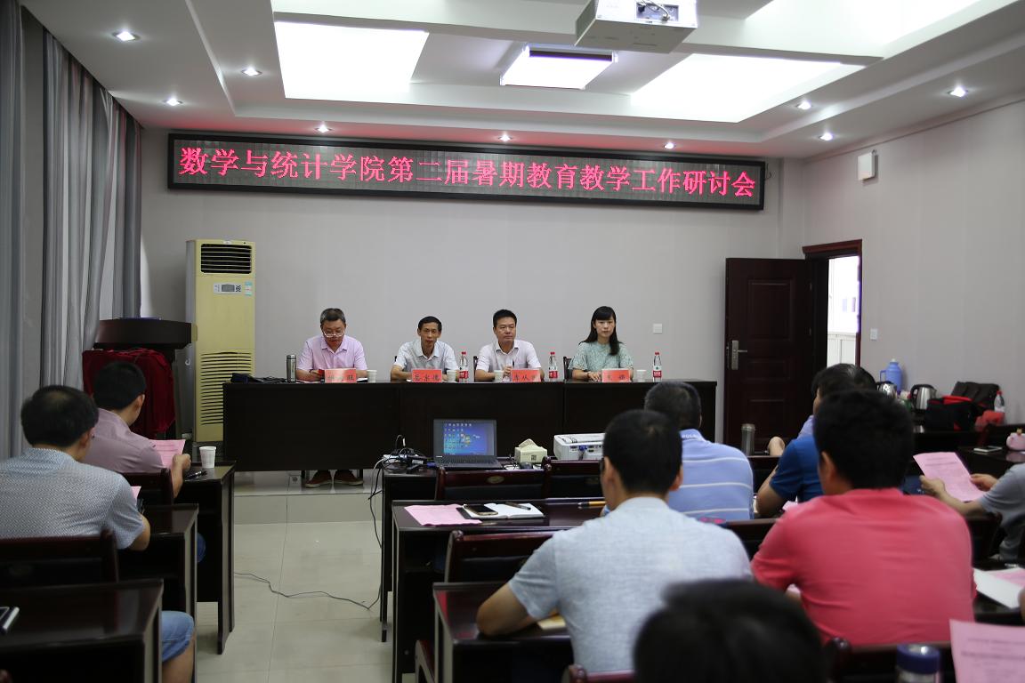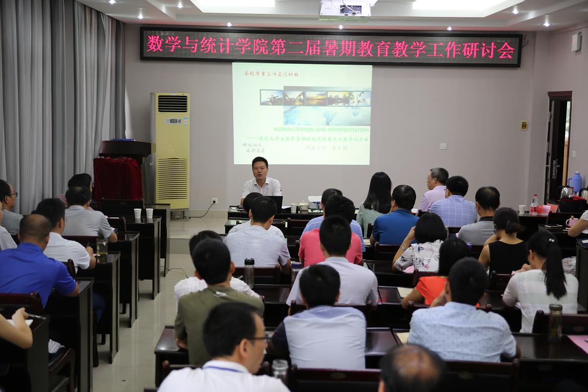 8月26日,数学与统计学院在数学楼会议室召开第二届暑期教育教学工作研讨会。河南大学国际教育学院党委副书记李从国副教授、太阳集团网站8722学生处处长岳宗德副教授、数学与统计学院全体教师参加了本次研讨会。会议由数学与统计学院院长胡余旺教授主持。