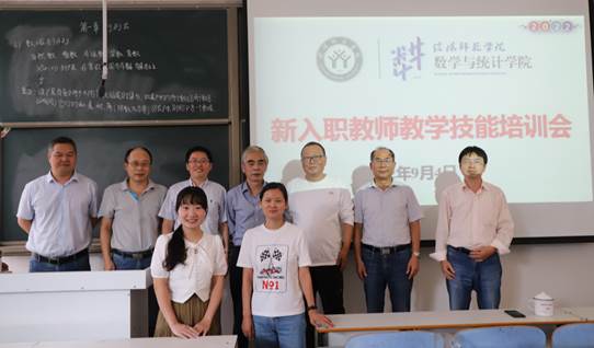 为使新入职教师快速融入教学,熟悉教学过程,提高教学水平,2022年9月4日下午15:00—18:00,我院在数学楼302教室开展了新入职教师教学技能培训活动。秦金华、陶有德、戴启学、张盛祝、苏春华等五位学院督导组成员及学院领导蔡礼明院长、洪亮书记、韩英波副院长、李连兵副院长莅临指导。