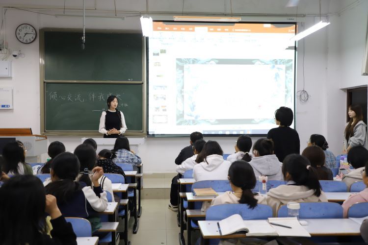 班会在各个班级同步进行,通过主讲人播放PPT的形式,新生们首先对学校的历史、文化和各类资源有了更加深入的了解。紧接着,各班新生代表纷纷上台,分享了自己对大学生活的期待和内心的疑问。为了回应这些期待和解答这些疑问,学院特意安排了各班的班代以及大三的学长学姐们进行经验分享。