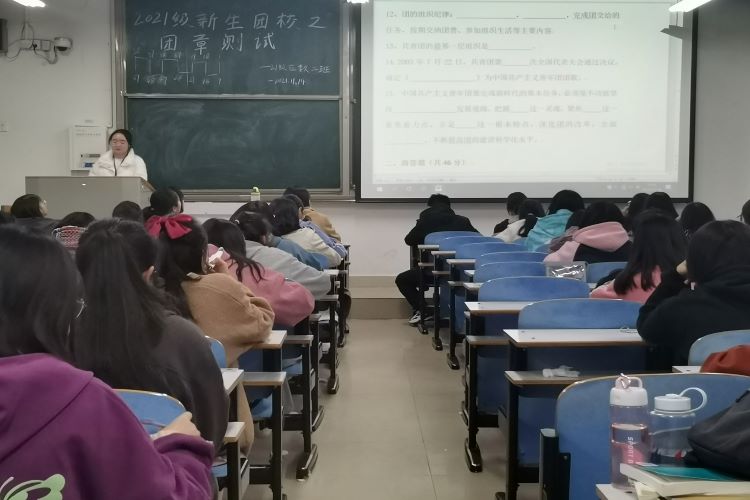 11月14日晚,太阳集团城娱8722在数学院固定教室举行2021级新生团章考试,2021级全体新生共同参加本次考试。