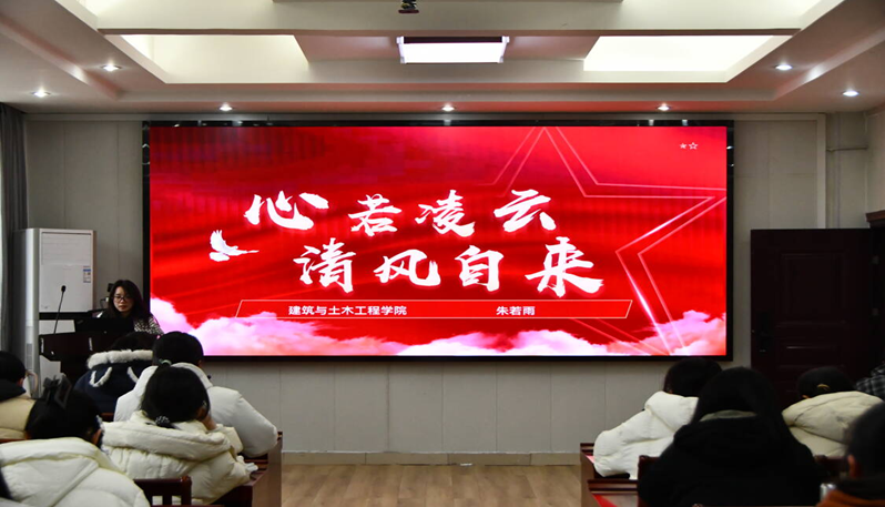 建筑与土木工程学院朱若雨同学以“不忘初心,砥砺前行”“循梦而行,向阳而生”“勇担职责,实践锻炼”“感恩过往,展望未来”为脉络,分享了她的成长故事。她始终坚守初心,积极参与思想引领活动;学业上刻苦钻研,成绩优异;自加入学院学生会以来,成功组织多场校园活动,个人也荣获多项荣誉。她以“知不足而奋进,望远山而力行”自勉,并祝愿同学们在奔赴未来的道路上如长风般生生不息、灿烂自由。