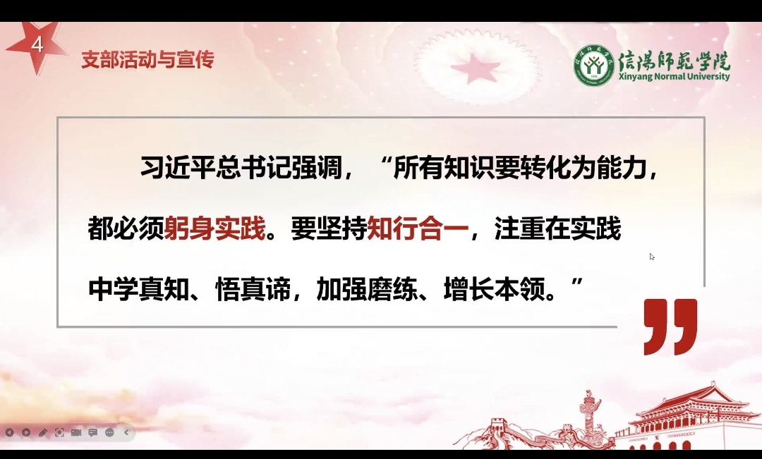 荣获国家奖学金、校园明星、自强之星的三位学生在宣讲会中,他们从自己的生活经历、学习上的方法、学科技能竞赛、社会实践等几个方面进行宣讲,用自己亲身经历给大家传递经验。 国家奖学金获得者刘珊也在演讲中引用习近平总书记的一句话“所有知识要转化为能力都必须躬身实践。要坚持知行合一,注重在实践中学真知、悟真谛,加强磨练、增长本领。”并用此来鼓励大家热爱生活,努力奋斗,勇于担当大胆尝试,要有一颗无畏的勇敢的心。校园明星薛颖珊根据自己的亲身经历给同学们提出了良好意见,鼓励同学们学习,带动更多的同学共同进步,让他们明晰对未来的规划,引导广大学生立志成长成才。