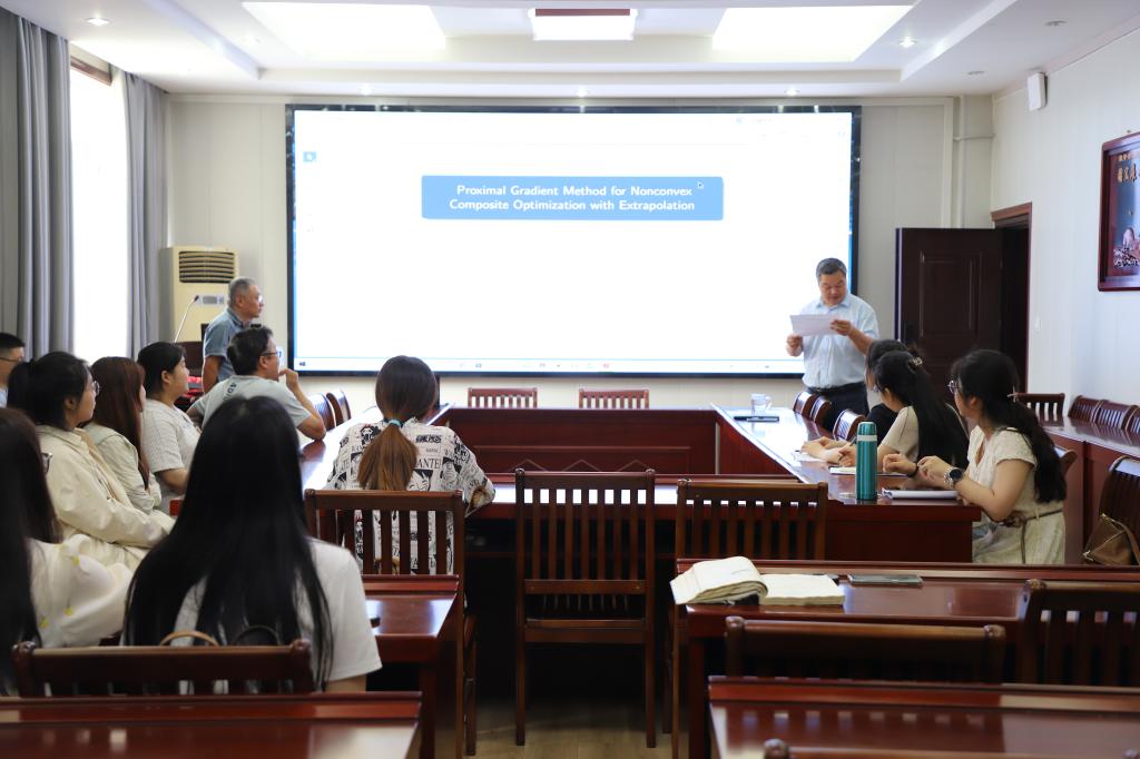 5月27日上午,应太阳集团城娱8722邀请,张洪超教授在学院315报告厅作了题为“Proximal Gradient Method for Nonconvex Composite Optimization with Extrapolation”的报告。报告会由太阳集团城娱8722副院长韩英波教授主持,部分教师和研究生参加了此次报告会。