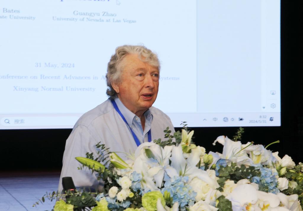 大会学术委员会主席、国际著名数学家、美国密西根州立大学Peter Bates教授在致辞中表示,近年来动力系统的队伍越来越壮大,并且研究向纵深迅速发展,信阳师范大学举办如此规模的国际会议可喜可贺。