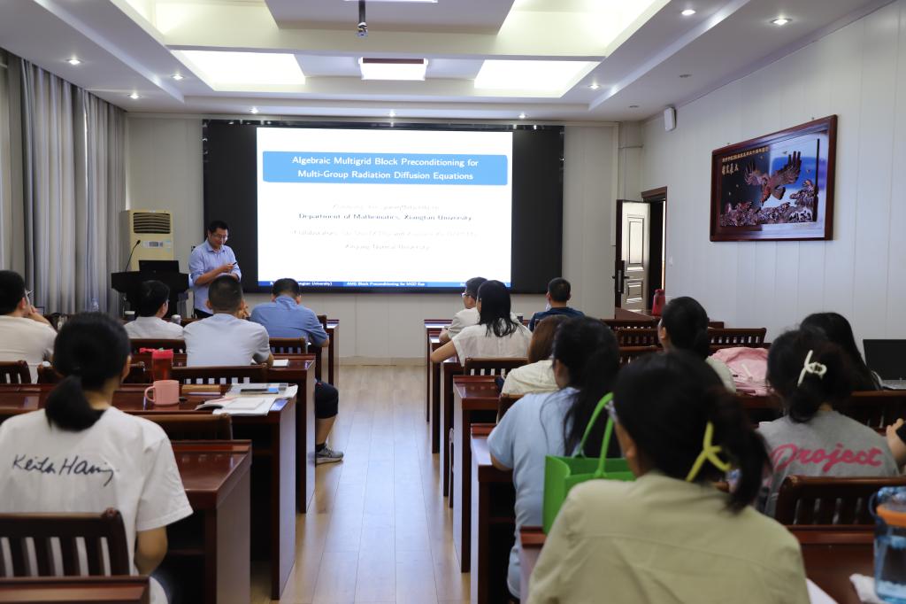 6月16日上午,应太阳集团城娱8722邀请,湘潭大学岳孝强教授作了题为《多群辐射扩散问题的代数多重网格块型预条件算法》的学术报告。报告会由李世顺教授主持,部分老师及研究生聆听了此次报告。