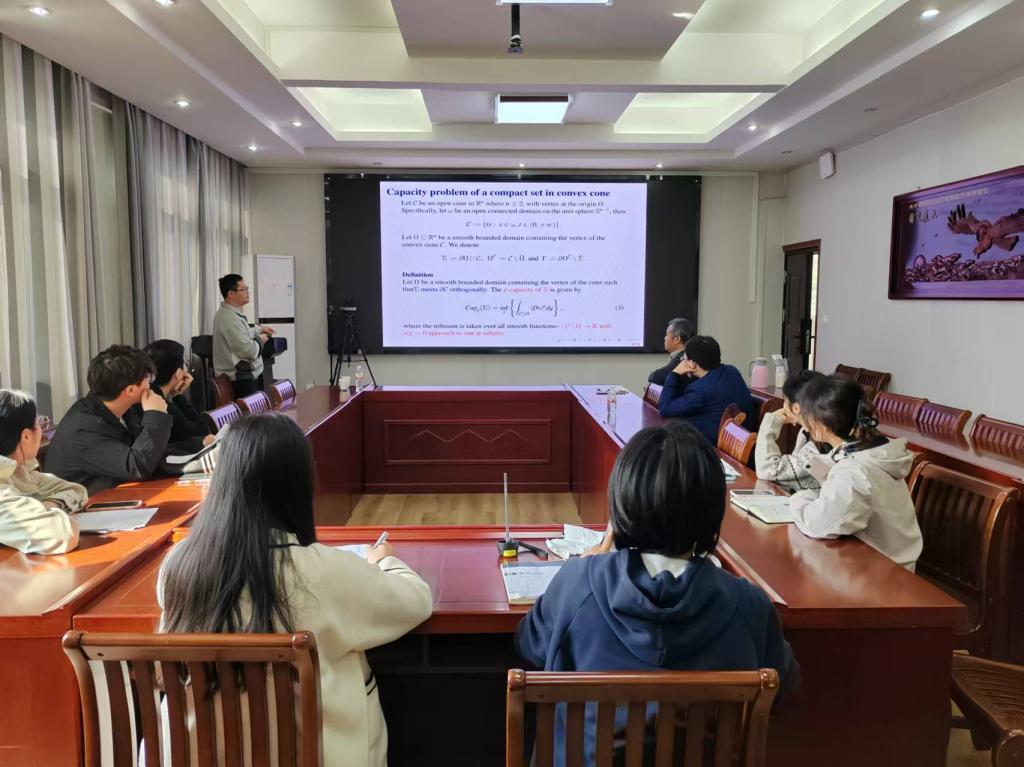 10月25日上午,应太阳集团城娱8722邀请,广西师范大学尹佳斌副教授作了题为《Sharp upper bounds of $p$-capacity in convex cone and asymptotically flat half-space》的学术报告。报告会由副院长韩英波教授主持,部分教师及研究生聆听了此次报告。