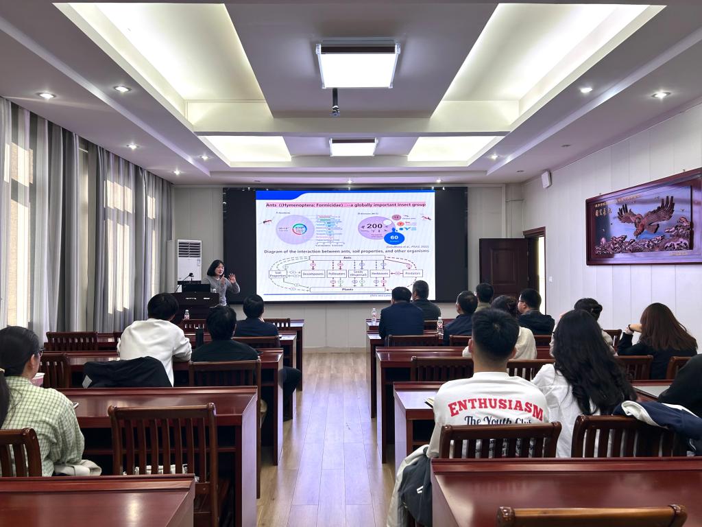 张晨露副教授介绍了在全球变化背景下,氮沉降增加与降雨格局改变的交互效应对生态系统产生的影响,主要关注蚂蚁对土壤生态系统健康、平衡以及植物生长产生重要作用。通过野外大型多因子控制实验设计,结合统计学相关基础理论和方法,深入研究了蚂蚁及非蚂蚁节肢动物类群在这些环境变化因素下的响应与适应机制。报告中指出,单一的氮沉降增加和增雨对土壤生态系统产生正向影响,而氮沉降增加与增雨的交互效应对土壤生态系统产生了负向影响。此研究对于深入理解土壤动物在维持生态系统平衡与稳定性方面的作用具有重要的理论与实践价值。