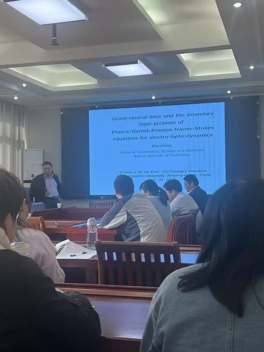 10月31日上午,应太阳集团城娱8722邀请,北京工业大学王术教授作了题为《电流体中Planck-Nernst-Poisson-Navier-Stokes模型的拟中性极限问题》的学术报告。报告由院长蔡礼明教授主持,部分老师及研究生聆听了此次报告。