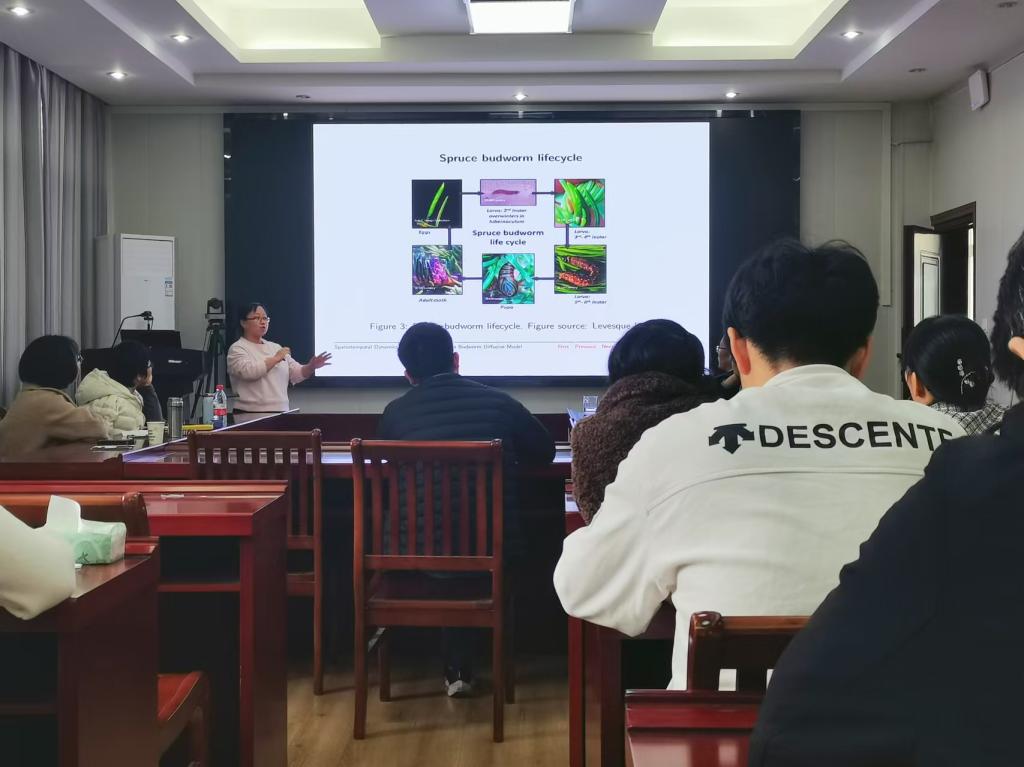 11月10日上午,应太阳集团城娱8722邀请,陕西师范大学舒洪英教授在数学楼315会议室为我校师生作了题为“Spatiotemporal dynamics of a structured spruce budworm diffusive model”的学术报告。报告由副院长王霞教授主持,生物数学方向的老师及研究生聆听了此次报告。