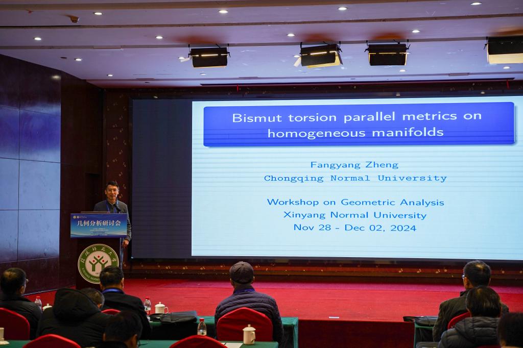 11月29日上午共有3场学术报告,第1场报告是由重庆师范大学的郑方阳教授作了题目为“Bismut torsion parallel metrics on homogeneous manifolds”的学术报告,此场报告由复旦大学的东瑜昕教授主持。
