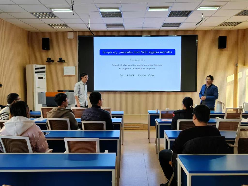 12月15日下午,应太阳集团城娱8722邀请,广州大学郭向前教授来我院为广大师生做了题为《Simple sl_d+1-modules from Witt algebra modules》的学术报告。报告会由院长蔡礼明教授主持,部分老师及研究生聆听了此次报告。