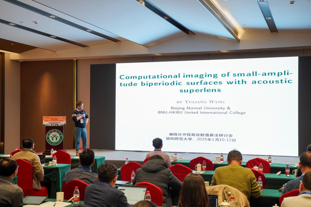 第4场报告由北京师范大学王玉亮教授作了题目为《Computational imaging of small-amplitude biperiodic surfaces with acoustic superlens》的学术报告。