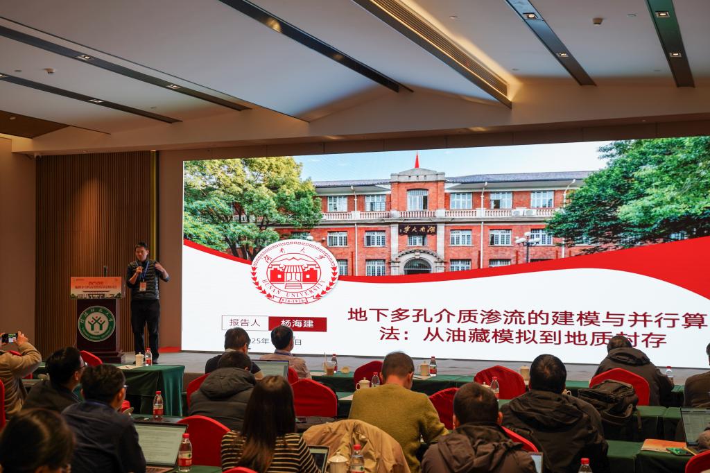 第2场报告由湖南大学杨海建教授作了题目为《地下多孔介质渗流的建模与并行算法:从油藏模拟到地质封存》的学术报告。