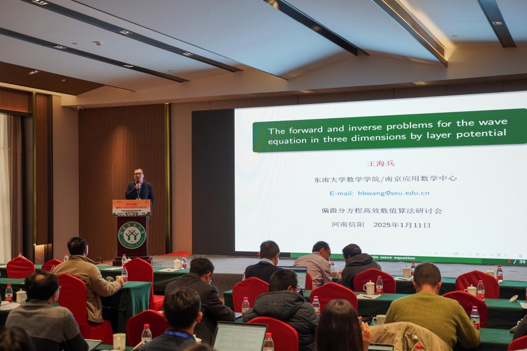 第3场报告由东南大学王海兵教授作了题目为《The forward and inverse problems for the wave equation in three dimensions by layer potential》的学术报告。