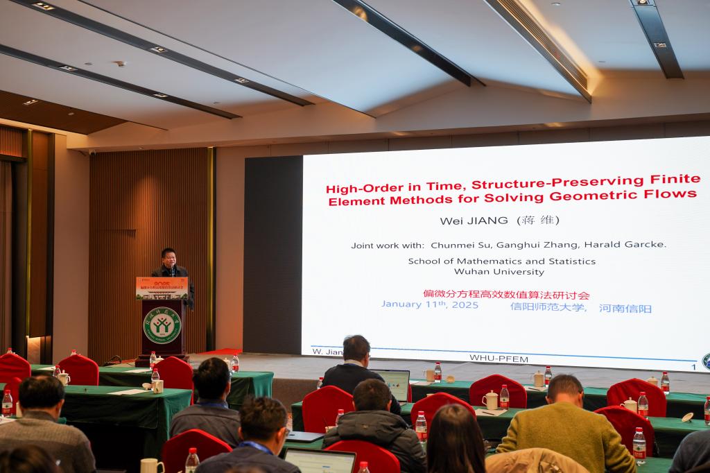 第6场报告由武汉大学蒋维教授作了题目为《High-order in time, structure-preserving parametric finite element methods for solving geometric flows》的学术报告。