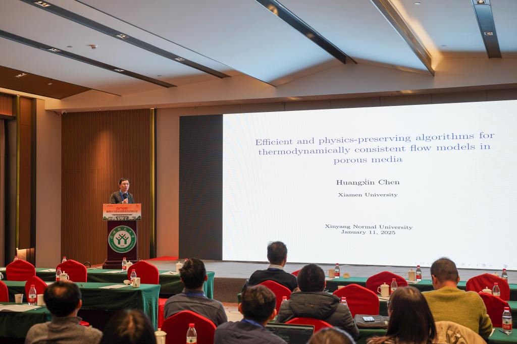 第5场报告由厦门大学陈黄鑫教授作了题目为《Efficient and physics-preserving algorithms for thermodynamically consistent flow models in porous media》的学术报告。
