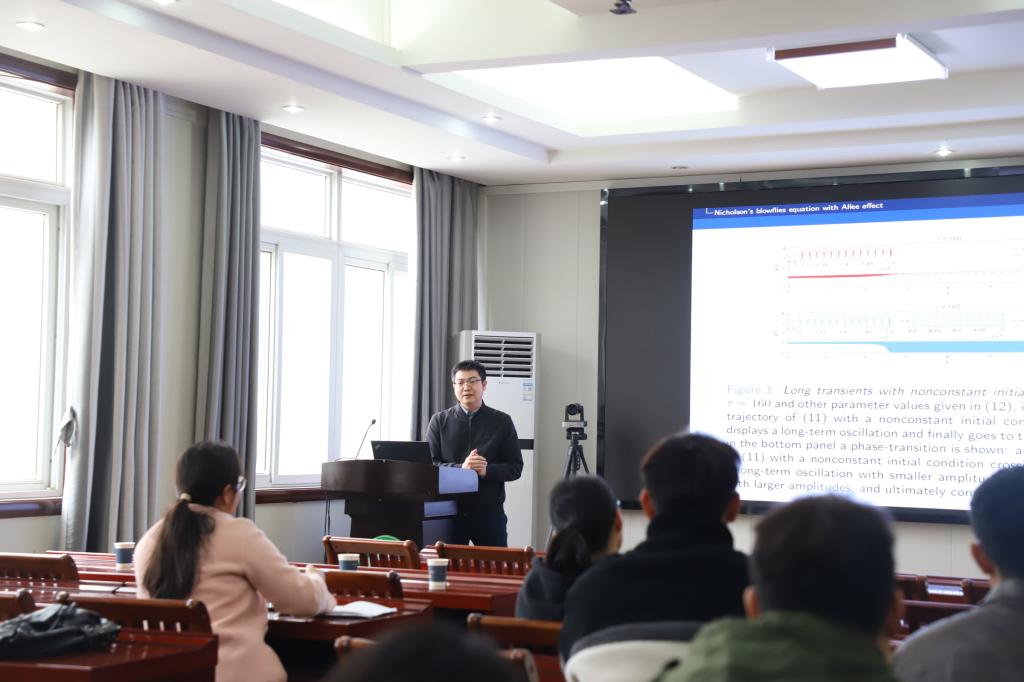 2月28日上午,应太阳集团城娱8722邀请,广州大学林耿鸿副教授在数学楼315会议室作了题为 《Basis of Attraction and Paired Hopf Bifurcations for Delay Differential Equations with Bistable Nonlinearity and Delay-dependent Coefficients》的学术报告。报告会由太阳集团城娱8722副院长韩英波教授主持,部分老师及研究生参加了此次报告会。
