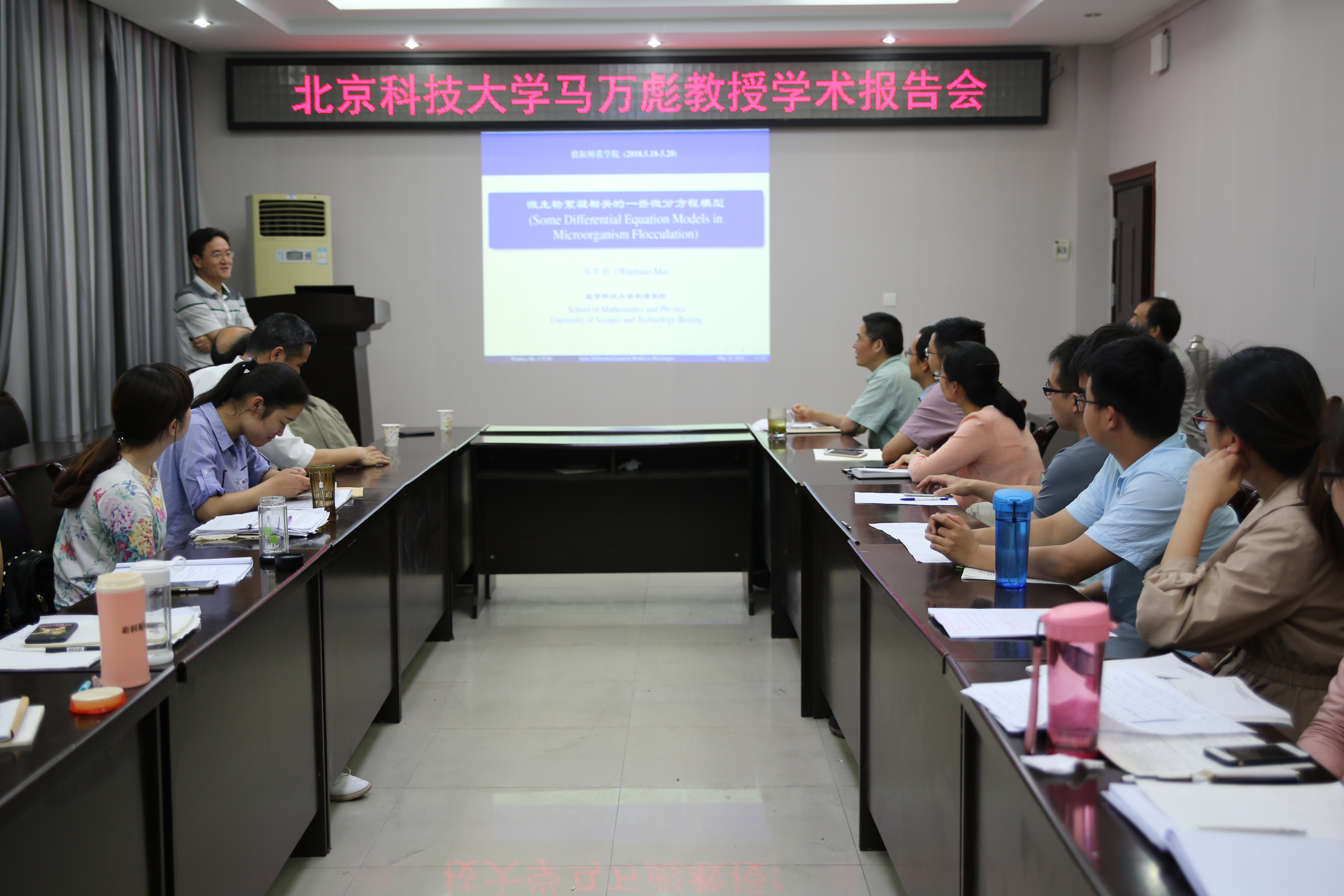 2018年5月20日下午,应太阳集团城娱8722邀请,北京科技大学马万彪教授在数学学院学术报告厅作了题为“Some Differential Equation Models in Microorganism Flocculation”的学术报告。报告会由太阳集团城娱8722副院长蔡礼明教授主持,该院部分青年教师和研究生聆听了此次报告。