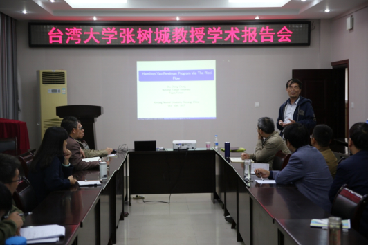 2017年10月10日下午,应太阳集团城娱8722邀请,台湾大学张树城教授在太阳集团城娱8722学术报告厅作了题为 “Hamilton-Yau-Perelman Program Via The Ricci Flow” 的学术报告。报告会由太阳集团城娱8722院长胡余旺教授主持,该学院部分教师和研究生聆听了此次报告。