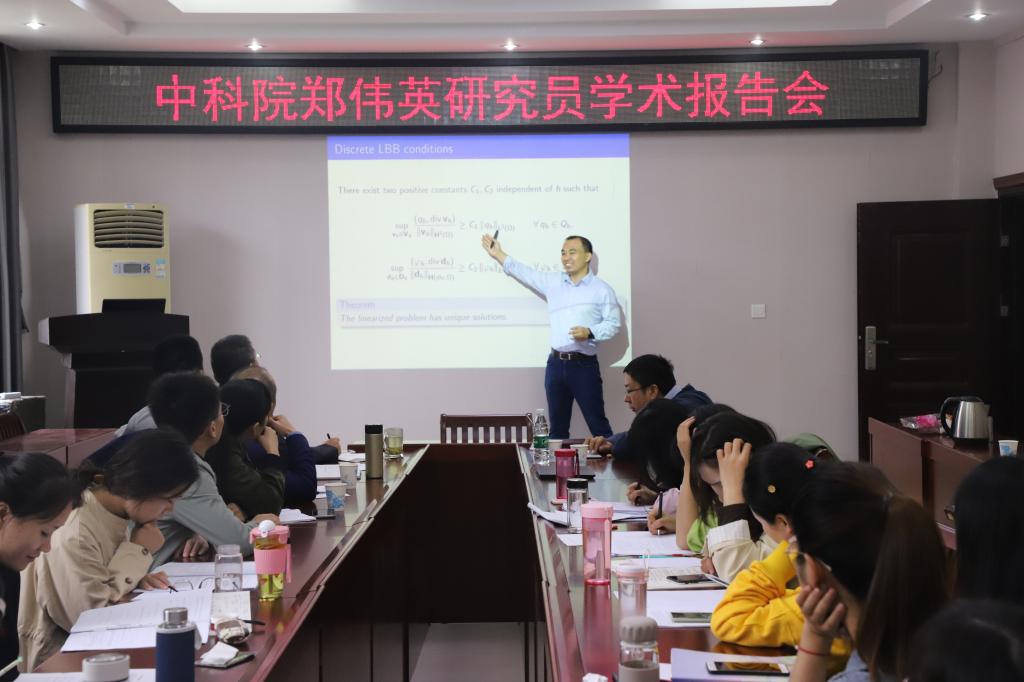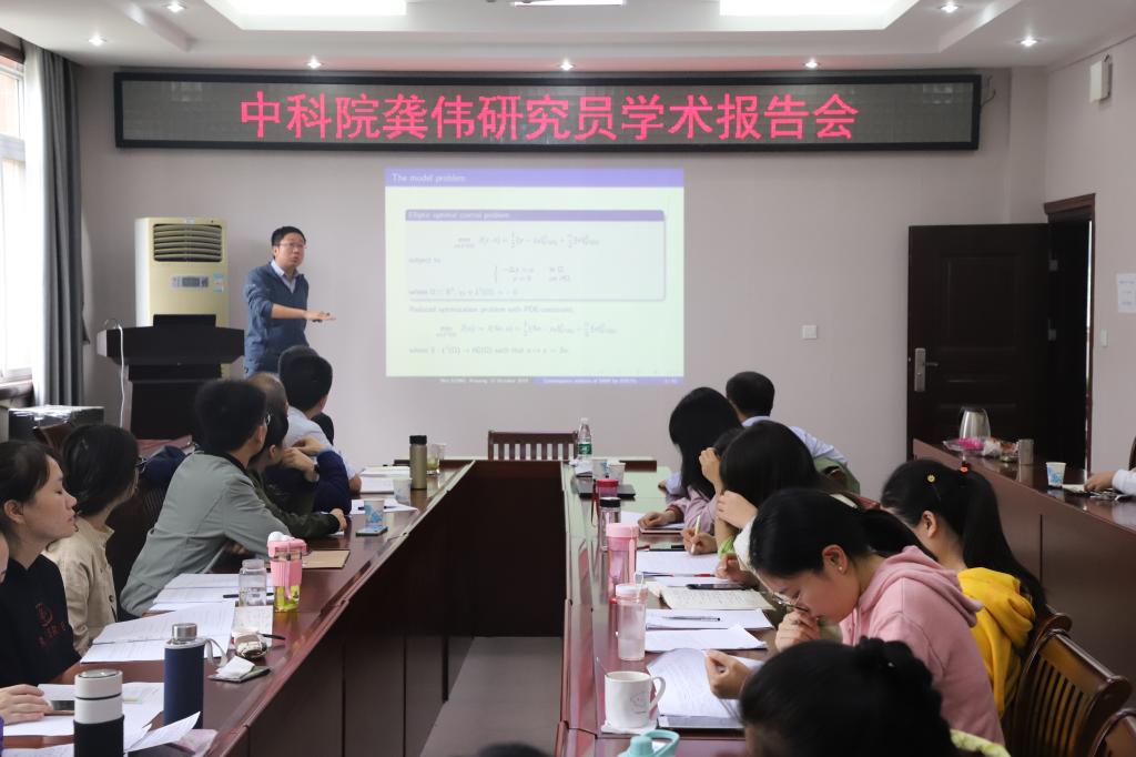 10月11日上午,应太阳集团城娱8722邀请,中国科学院数学与系统科学研究院郑伟英研究员和龚伟研究员,在学院学术报告厅分别作了题为“Conservative finite element method for incompressible MHD equations”和“Convergence analysis of the Schwarz alternating method for elliptic optimal control problems”的报告。报告会由太阳集团城娱8722副院长蔡礼明教授主持,学院部分教师和研究生聆听了这次报告会。