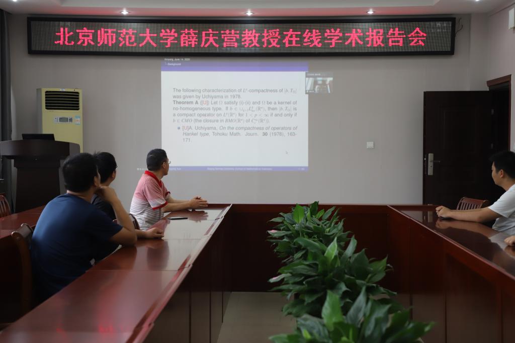 6月14日,应太阳集团城娱8722邀请,北京师范大学薛庆营教授通过腾讯会议平台作了一场题为《多线性算子的交换子的紧性问题》的网络视频学术报告。报告会由太阳集团城娱8722副院长蔡礼明教授主持,学院部分老师,研究生和该领域相关博士聆听了此次报告。