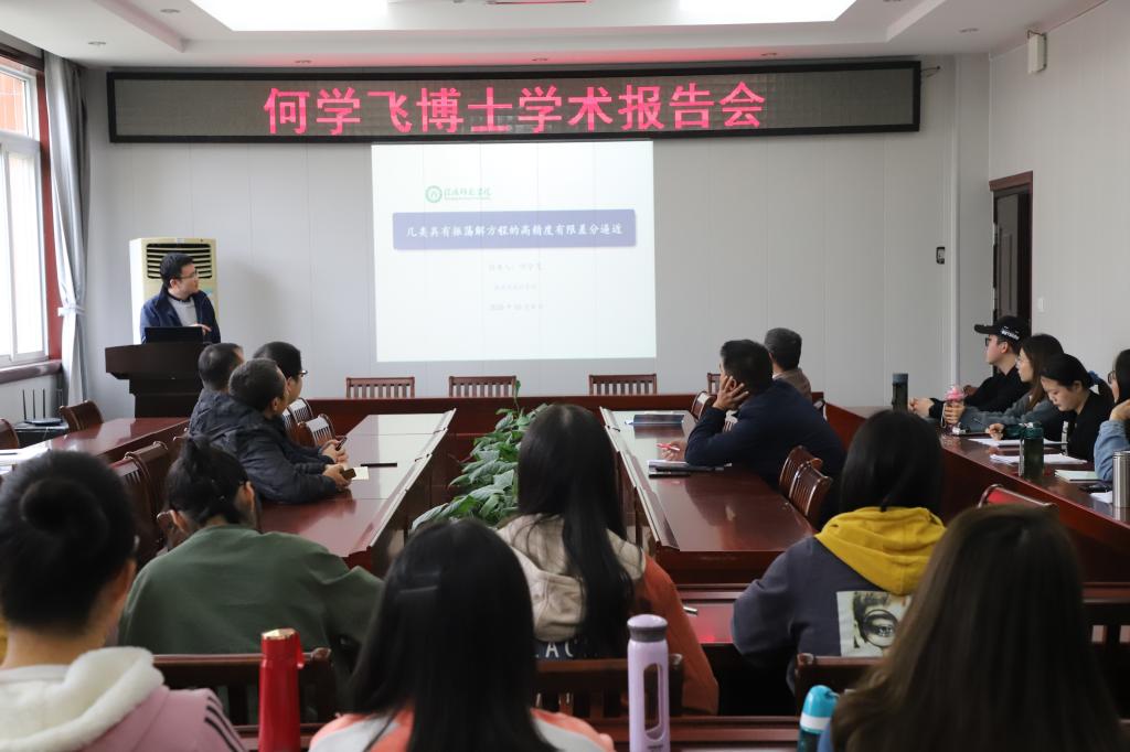 10月6日下午,新入职教师何学飞博士和王常健博士在太阳集团城娱8722学术报告厅分别做了题为《几类具有振荡解方程的高精度有限差分逼近》和《关于抛物型Allen-Cahn方程解奇异极限的研究》的学术报告。报告会由学院副院长蔡礼明教授主持,学院部分老师和研究生聆听了此次报告。
