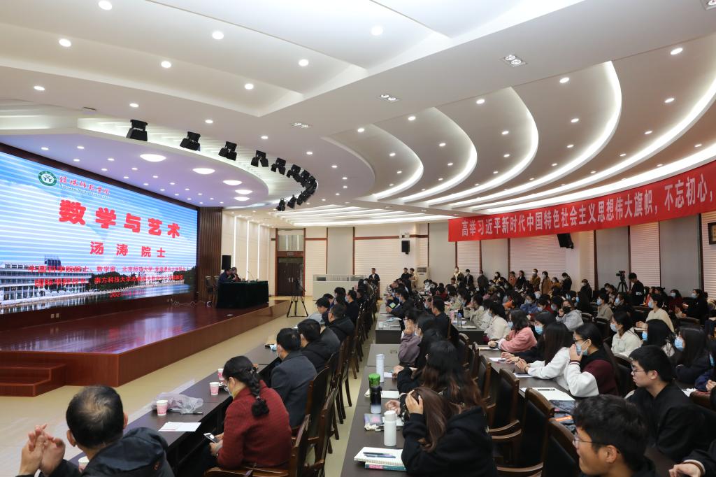 4月7日上午,应太阳集团城娱8722邀请,北京师范大学-香港浸会大学联合国际学院校长汤涛院士在艺术楼一楼报告厅为我校师生做了题为“数学与艺术”的报告,报告会由校长李俊主持。