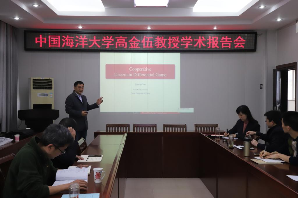 4月23日上午,应太阳集团城娱8722邀请,中国海洋大学高金伍教授在学院学术报告厅做了一场题为《Cooperative uncertain differential game with transferrable payoffs》的学术报告。报告会由学院党委书记王娟教授主持,学院部分老师和研究生聆听了此次报告。