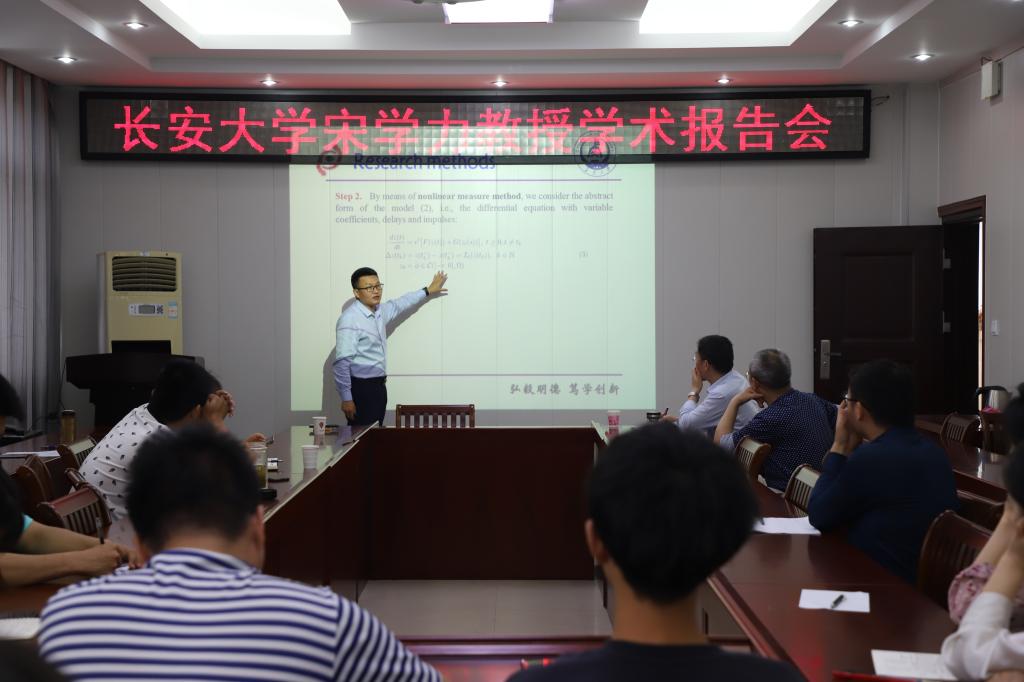 5月15日下午,应太阳集团城娱8722邀请,长安大学宋学力教授在太阳集团城娱8722学术报告厅做了一场题为《Stability analysis of impulsive and proportional delayed cellular neural networks》的学术报告。报告会由太阳集团城娱8722副院长蔡礼明主持,太阳集团城娱8722院长胡余旺,学院部分老师和研究生聆听了此次报告。