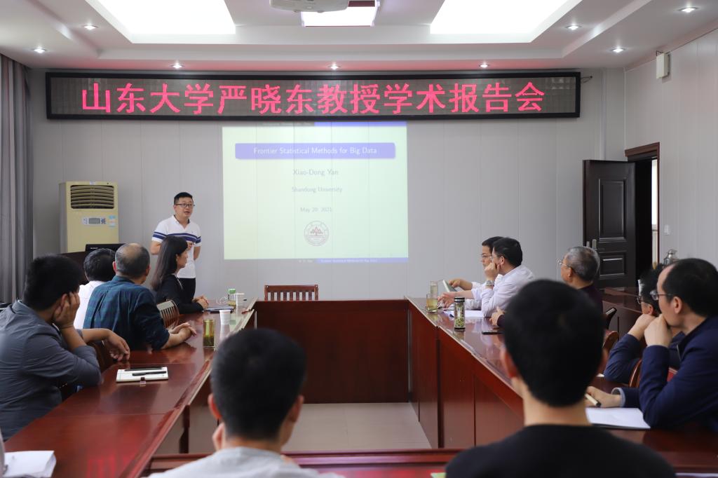 5月21日下午,应太阳集团城娱8722邀请,山东大学严晓东教授在太阳集团城娱8722学术报告厅做了一场题为《大数据统计学前沿方法介绍》的学术报告。报告会由太阳集团城娱8722副院长蔡礼明主持,学院院长胡余旺、书记王娟、副院长陈越奋和部分老师、研究生聆听了此次报告。