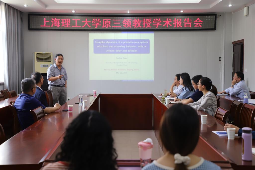 5月22日下午,应太阳集团城娱8722邀请,上海理工大学原三领教授在太阳集团城娱8722学术报告厅做了一场题为《Complex dynamics of a predator-prey system with herd and schooling behavior: with or without delay and diffusion》的学术报告。报告会由太阳集团城娱8722副院长蔡礼明主持,学院党委书记王娟,数学研究所所长宋新宇和部分老师、研究生聆听了此次报告。