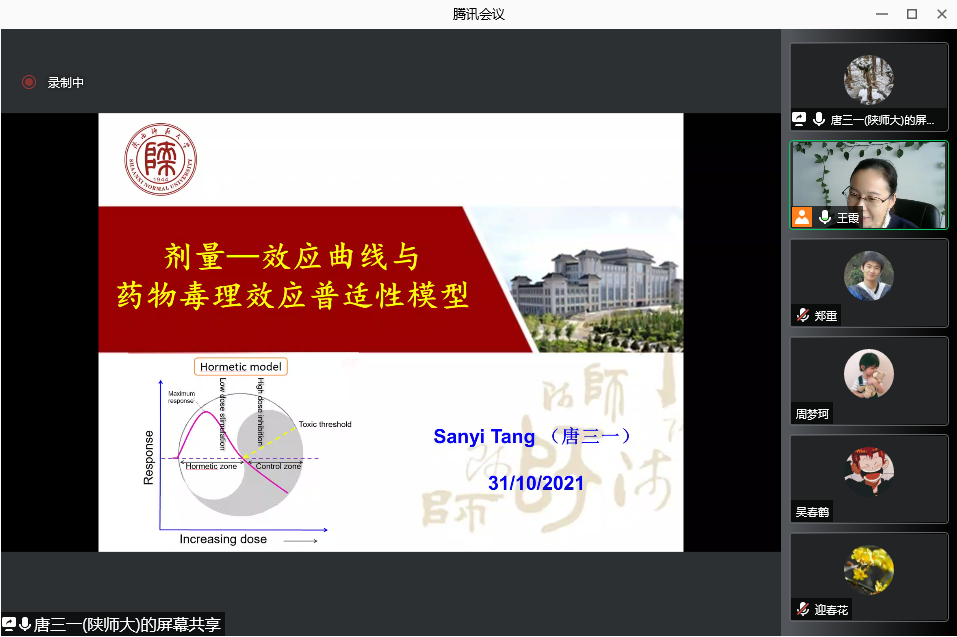 10月31日上午,应太阳集团城娱8722邀请,陕西师范大学唐三一教授通过腾讯会议平台为我院研究生及相关研究方向老师作了题为《剂量—效应曲线与药物毒理效应普适性模型》的学术报告。报告会由太阳集团城娱8722王霞教授主持。