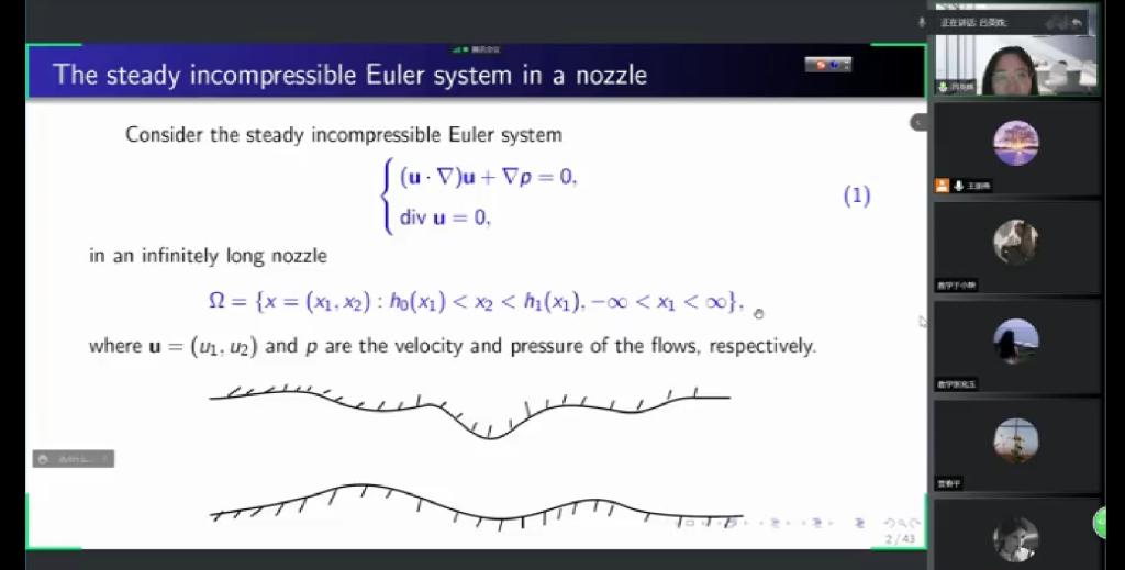 5月28日上午,应太阳集团城娱8722邀请,复旦大学吕英姝博士后通过腾讯会议平台做了一场题为《Uniqueness and existence of steady solutions for the Euler system in an infinitely long nozzle》的学术报告。报告会由太阳集团城娱8722王朋燕博士主持,学院部分老师和研究生聆听了此次报告。