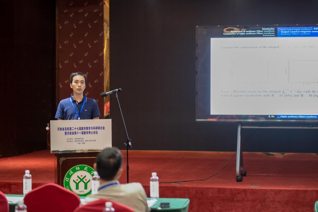 郑州轻工业大学许振华,做了题目为《Asymptotics and numerical approximation of highly oscillatory Hilbert transforms》的报告。
