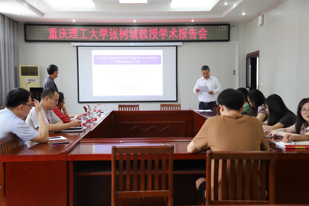 6月14日下午,应太阳集团城娱8722邀请,重庆理工大学张树城教授在学院报告厅作了题为“Analytic Minimal Model Program in a Sasakian Five-Manifold”的报告。报告会由太阳集团城娱8722副院长韩英波教授主持,几何学团队教师和研究生参加了此次报告会。