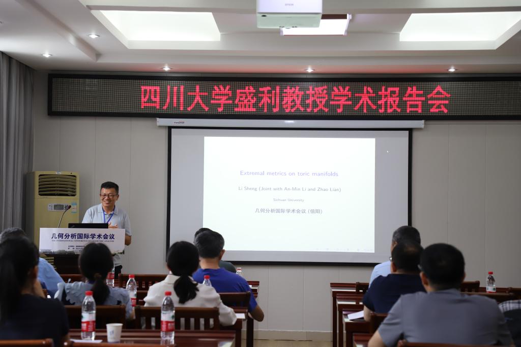 第2场报告由四川大学盛利教授报告,题目为《Extremal Metrics on Toric Manifolds》。在报告中,盛利教授给出了环流形和齐次环丛上的的Yau-Tian-Donaldson猜想的证明。