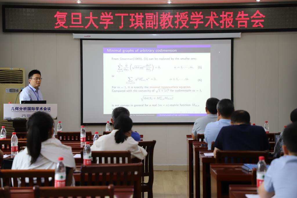 第1场报告由复旦大学丁琪副教授报告,题目为《Minimal graphs of high codimensions》。在报告中,丁琪副教授讨论了欧氏空间中的高余维极小图列的极限。作为应用,得到了极小图上的刚性结果。
