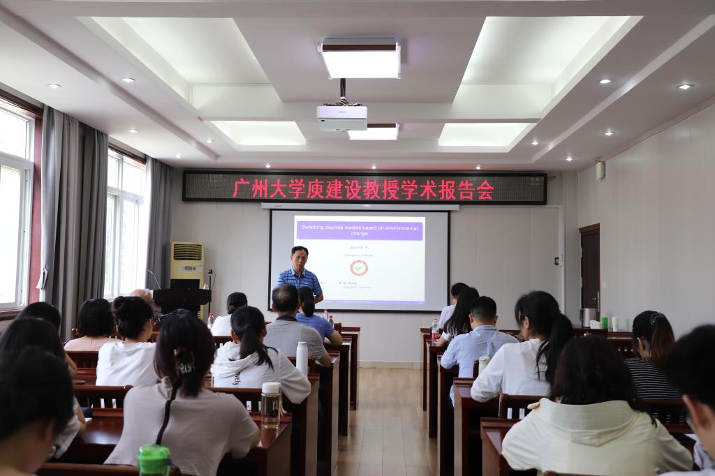 在6月30日上午,广州大学的庾建设教授应太阳集团城娱8722的邀请,在学院报告厅作了题为“Switching discrete models based on environmental change”的报告。该报告由太阳集团城娱8722院长蔡礼明教授主持,生物数学团队的教师以及研究生们参与了报告会。
