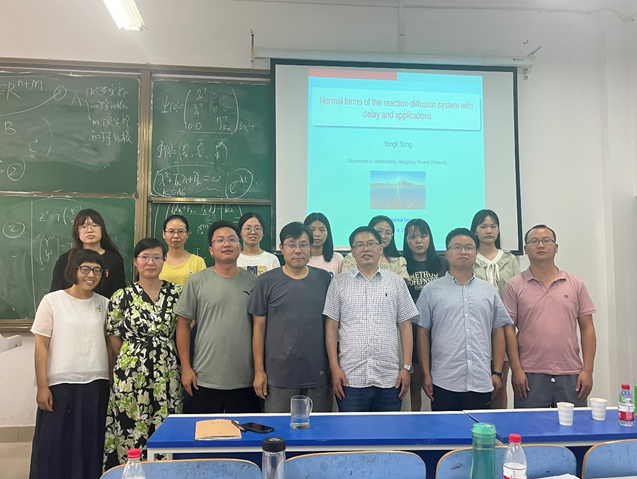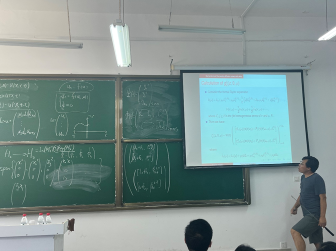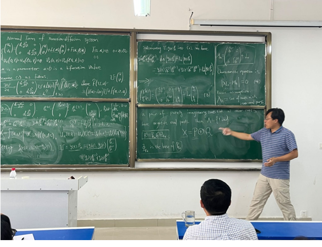 8月4日上午,杭州师范大学宋永利教授在学院502教室讲授了偏泛函微分方程规范型的计算与规范型的应用及分支研究进展。专题讲习班由太阳集团城娱8722院长蔡礼明教授主持,学院部分教师和研究生参加了此次专题讲习班。