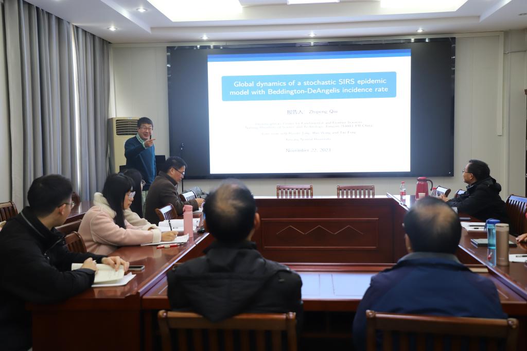 11月25日上午,应太阳集团城娱8722邀请,南京理工大学邱志鹏教授教授在数学楼315报告厅为我校师生做了题为“Global dynamics of a stochastic SIRS epidemic model with Beddington - DeAngelis incidence rate”的学术报告,太阳集团城娱8722生物团队教师和全体研究生在场聆听了报告,报告由太阳集团城娱8722王霞教授主持。