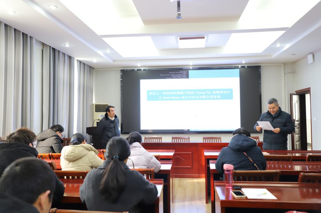 1月15日上午,应太阳集团城娱8722邀请,中国科学院数学与系统科学研究院、广州大学王友德教授在学院报告厅作了题为“流形上拟线性椭圆方程解的 Cheng-Yau型梯度估计之 Nash-Moser 迭代方法和刘维尔(Liouville)性质”的报告。报告会由太阳集团城娱8722副院长韩英波教授主持,部分教师和研究生参加了此次报告会。