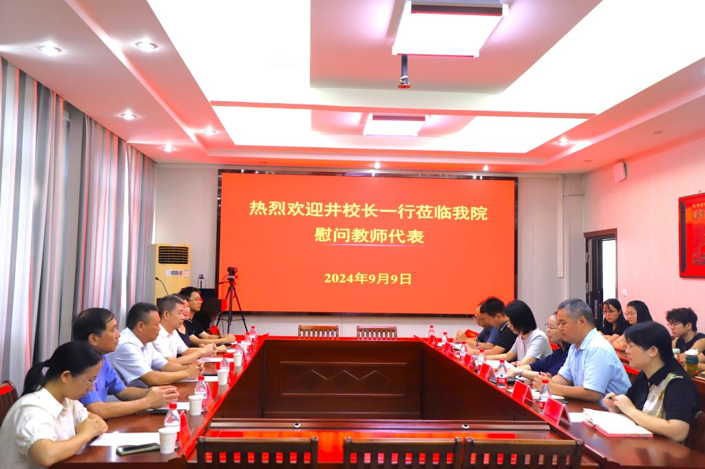9月9日上午,在第40个教师节到来之际,副校长井强山带领校长办公室、人事处、教务处等部门负责同志到我院走访慰问,向全院教师致以节日的祝福和诚挚的问候。