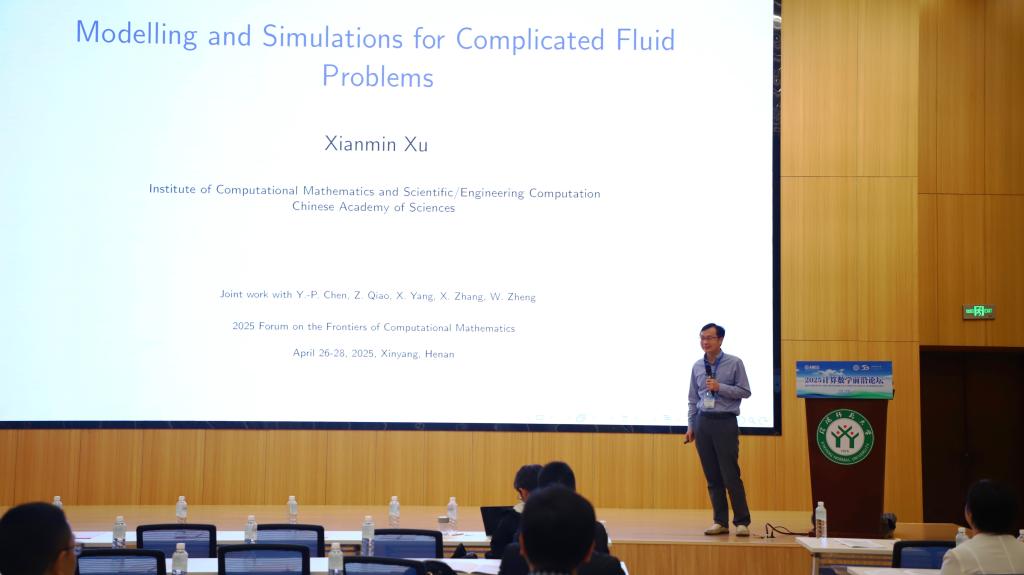 6中国科学院数学与系统科学研究院许现民研究员作了题目为《Modelling and Simulations for complicated fluid problems的学术报告。(李世顺供稿、严辉银审核、韩英波终审)