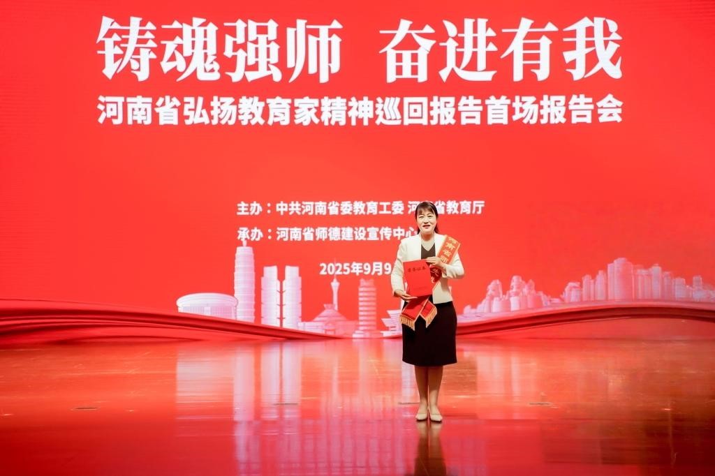 9月9日,河南省第41个教师节表彰大会暨“弘扬教育家精神”主题巡回报告首场报告会在河南省人民会堂隆重举行,我院教师谢艳丽荣获“河南省师德先进个人”称号,并接受现场表彰。同时,她还入选“铸魂强师,奋进有我”弘扬教育家精神巡回报告团,将赴豫西多地开展巡回报告。