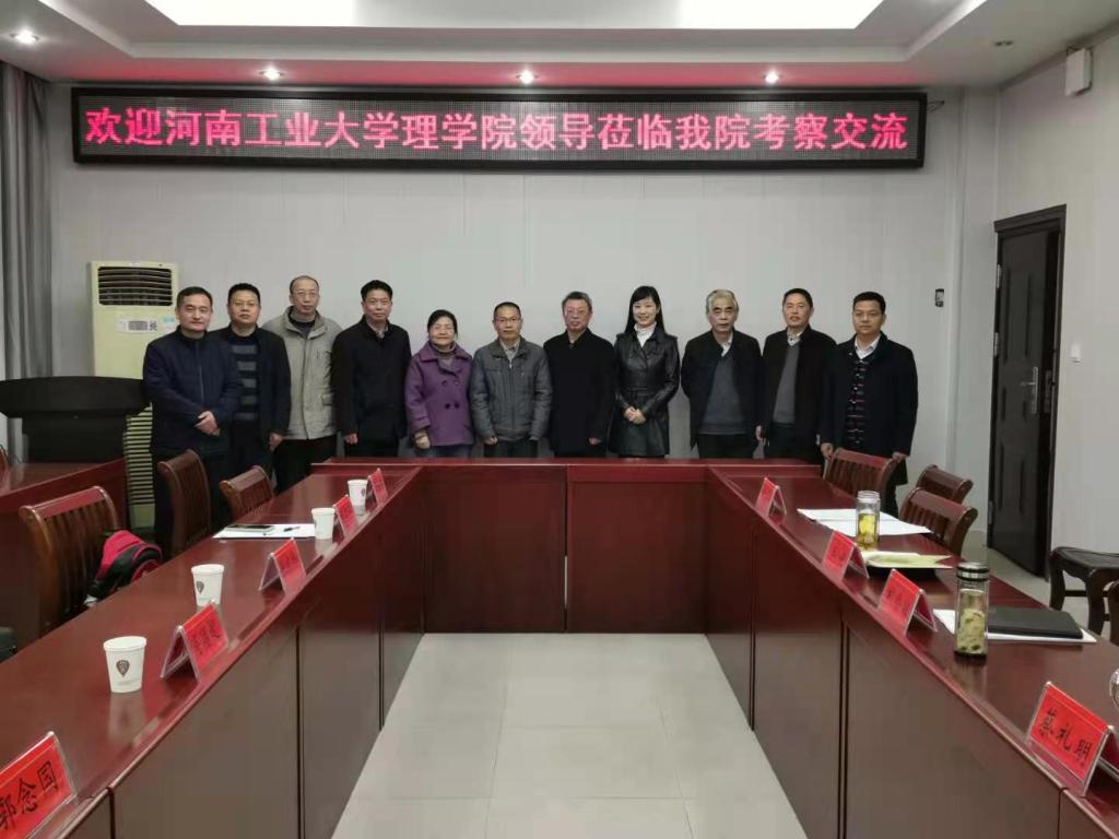 3月18日,河南工业大学理学院党委书记张宏伟、副院长曹健莉、院长助理肖留超、数学专业负责人李俊海、统计专业负责人郭念国一行5人来我院开展调研交流活动,我院院长胡余旺、党委书记王娟、副院长蔡礼明、陈越奋、数学研究所副所长周学勇等出席座谈会,会议由胡余旺主持。