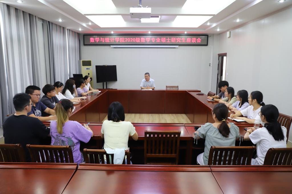 9月14日下午,我院在数学楼315会议室召开2020级数学专业研究生座谈会。副院长韩英波,研究生班主任郑重和全体2020级数学专业在校研究生参加了会议。