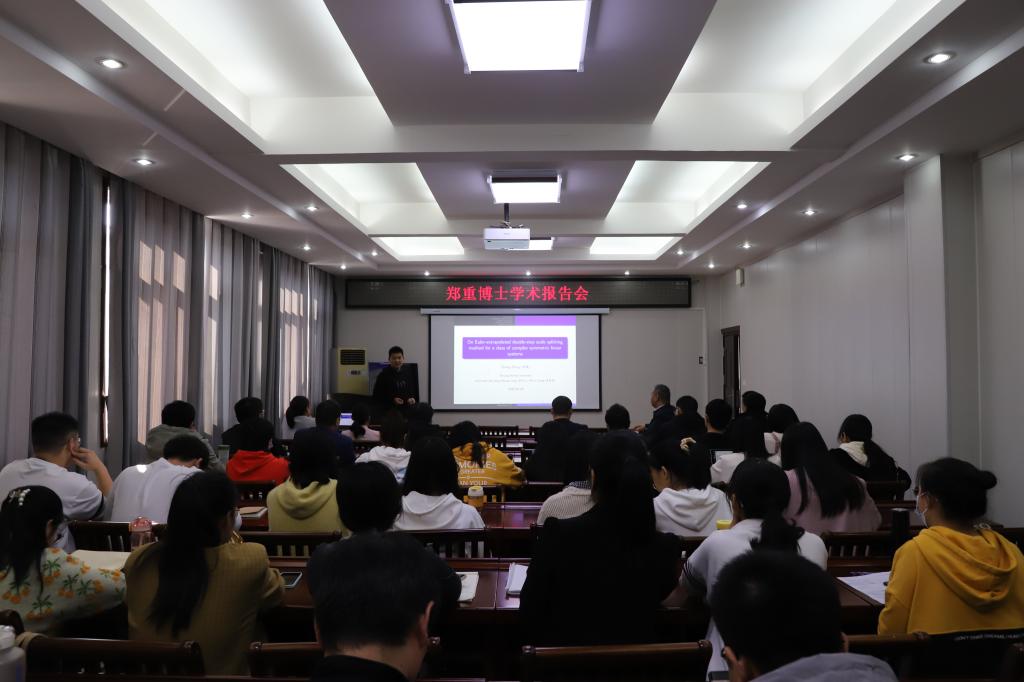 郑重博士作为第六期论坛活动的主讲人,作了题为“On Euler-extrapolated double-step scale splitting method for a class of complex symmetric linear systems”的学术报告。郑博士首先简单介绍复对称线性系统的研究现状及若干高效解法,并着重讲解了定常迭代法的构造技巧和注意事项。然后郑博士讨论了求解复对称半正定系统的欧拉外推的双步尺度分裂(EDSS)迭代法,理论上给出该方法的无条件收敛性及最优松弛因子的刻画,并证明了EDSS方法的谱半径不超过0.41057。此外,郑博士还对PDE约束优化问题数值解做了一些分享和展望。
