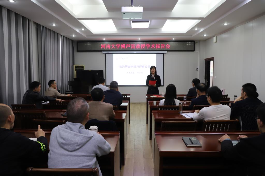 10月24日下午,应太阳集团城娱8722邀请,河南大学学术副校长傅声雷教授在数学楼315会议室作了题为《基金申请和评审经历》的学术报告。副校长王娟,数学学院院长蔡礼明、党委书记洪亮,副院长韩英波及我校部分教师、研究生聆听了此次报告。报告会由王娟教授主持。