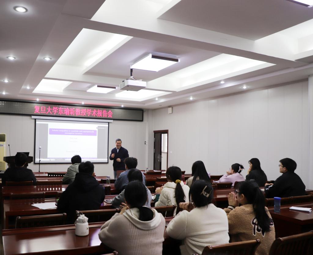 报告后东瑜昕教授与参加报告的师生展开了热烈讨论,就师生所提出的问题一一进行了详细解答。此次报告会和交流讨论对在座的老师和学生都有很大的启发,激发了在座师生研究微分几何的兴趣和信心。