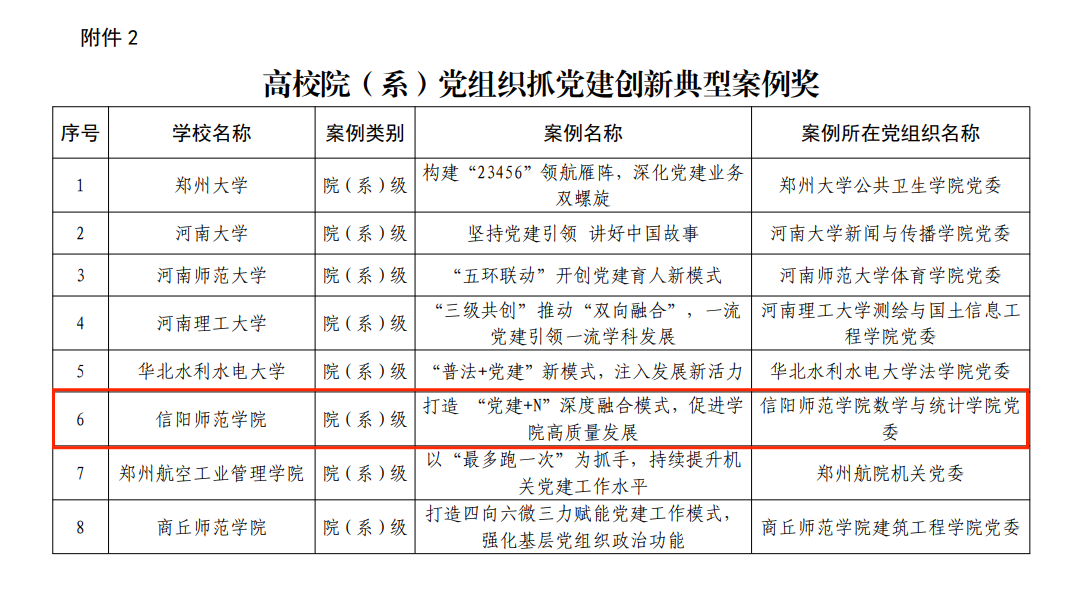 近日,全省首批高校党建工作强基引领“三级联创”、基层党建创新典型案例等评选结果公布,太阳集团城娱8722党委获批 “全省党建工作标杆院系”,学院党委申报的《打造“党建+N”深度融合模式,促进学院高质量发展》荣获高校院(系)党组织抓党建创新典型案例。